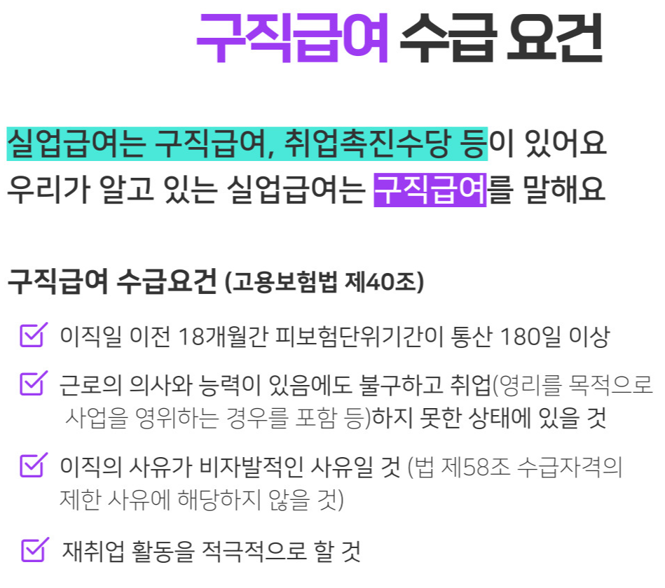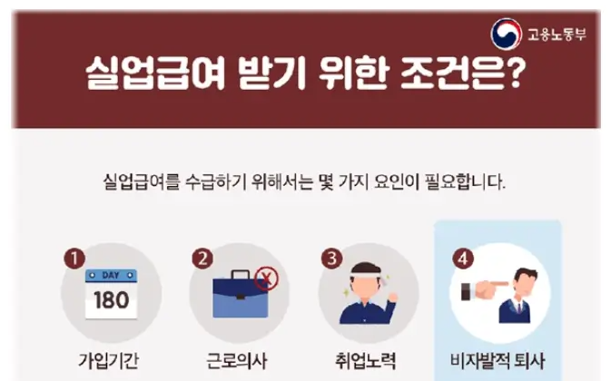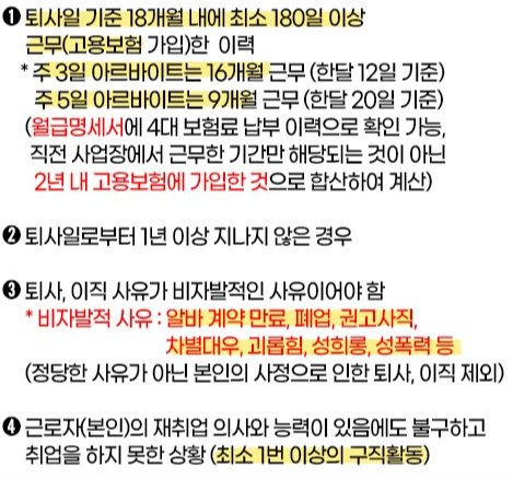 - 재취업 의지가 있어야 하며, 개인의 귀책사유로 인한 퇴사가 아니어야 합니다.