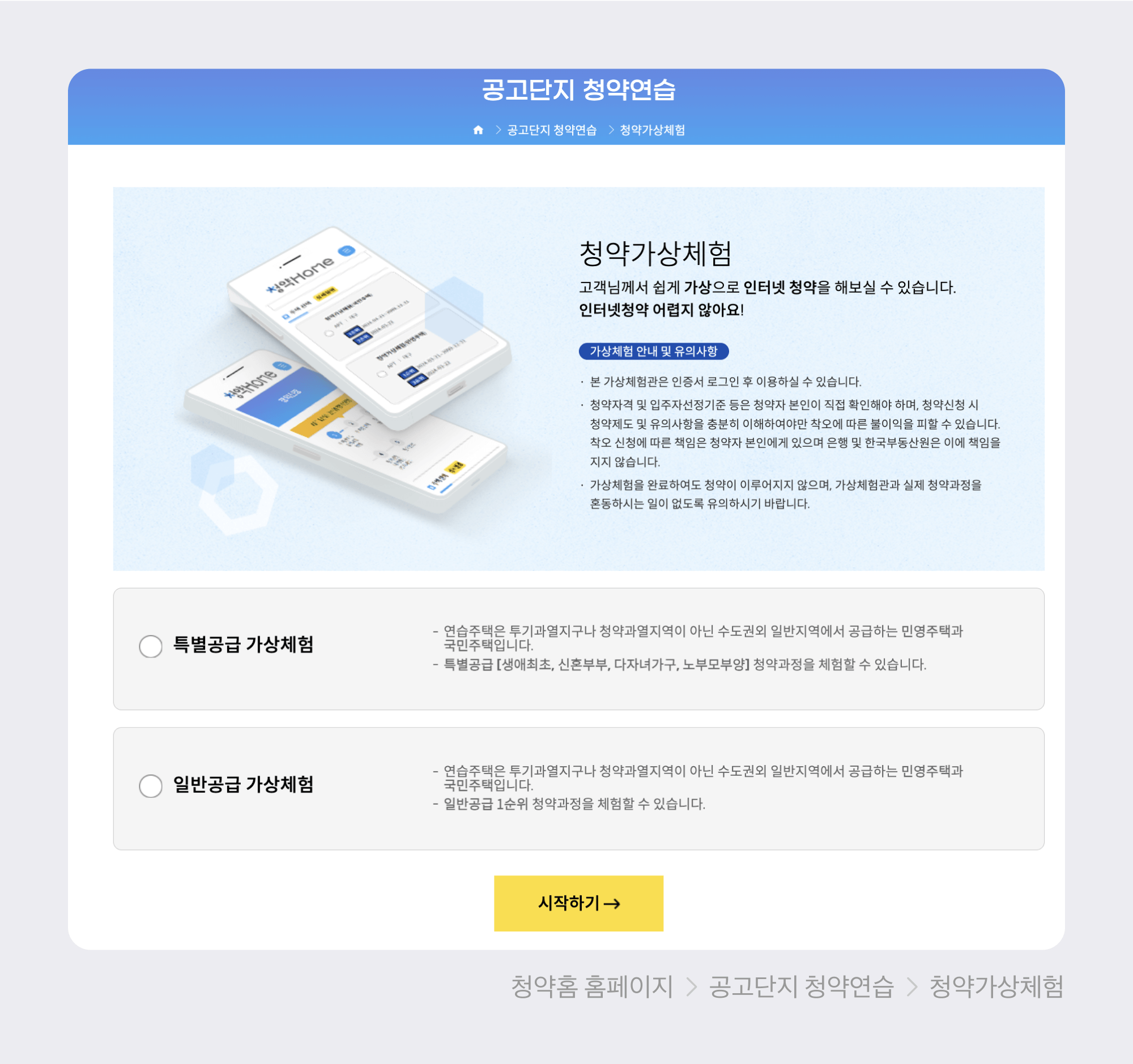 - 청약유형 선택 (일반공급/특별공급) - 자격에 맞는 유형 선택