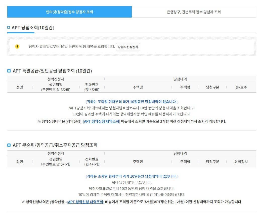 청약홈 자격조회 세부사항
