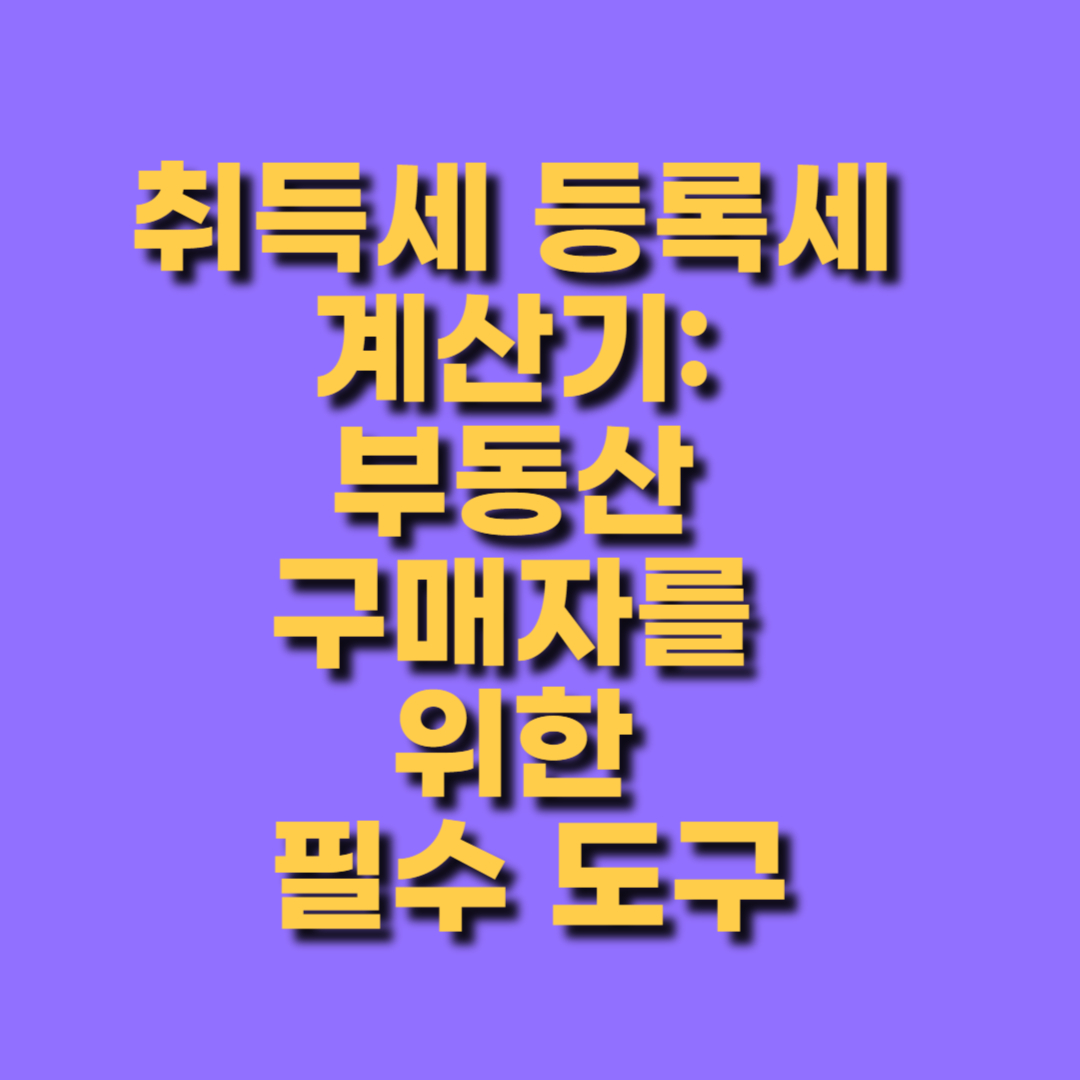 취득세 등록세 계산기: 부동산 구매자를 위한 필수 도구