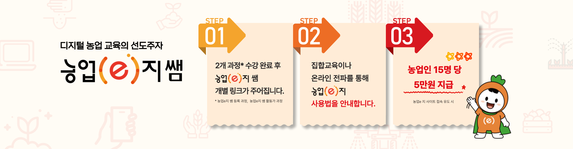 양한 지원사업을 농업e지에서 신청할 수 있습니다. 농림수산식품교육문화정보원에서 제공하는 교육프로그램과 연계됩니다.