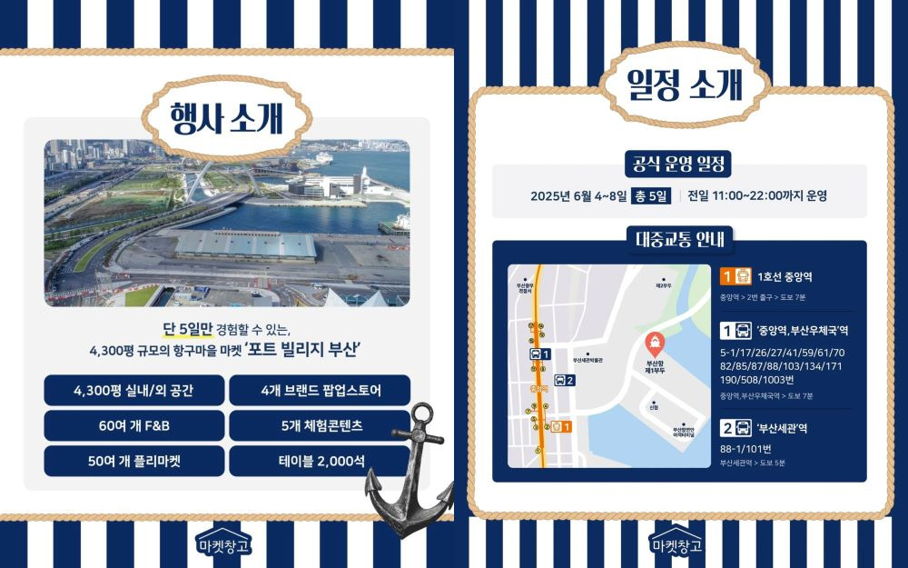 이번 포트 빌리지 부산에서는 SNS 인증 이벤트와 현장 참여 프로그램을 통해 다양한 경품과 혜택을 제공합니다. 특히 마켓창고 공식 인스타그램 팔로우를 통해 실시간 행사 소식과 깜짝 이벤트 정보를 받아보실 수 있습니다.
